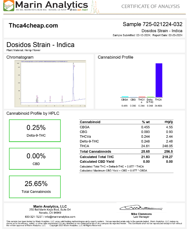 In addition to its high THCA content, Do-Si-Dos THCA Flower undergoes stringent testing for heavy metals, pesticides, moisture, and mycotoxins, ensuring a safe and clean product with every batch.